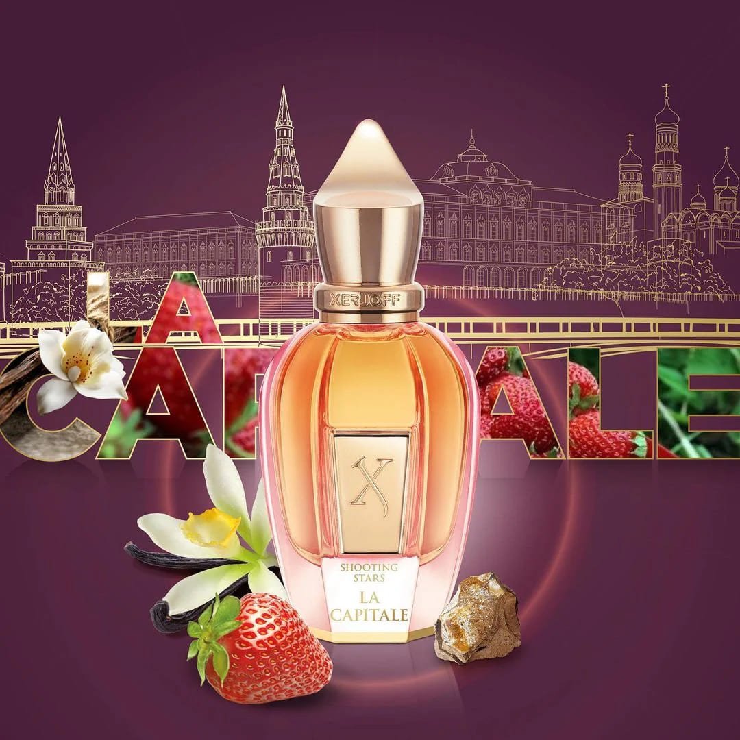 من أول رشة، يفوح La Capitale من دار Xerjoff بمزيجٍ فاخر من الفراولة، والكراميل، والليمون، والفلفل الوردي.